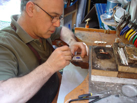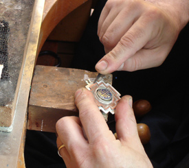 El taller comienza en 1988, en sus orígenes realizábamos piezas siguiendo la tendencia de la época que era lo que llamamos engarce de las piedras en plata. Llegado un momento de nuestro desarrollo nos dimos cuenta que la expectativa de crecimiento como personas y como taller en especial, no era la tradicional, entonces decidimos agregar a lo puramente estético un valor dado por una simbología, que entrega una satisfacción y a su vez cubre una necesidad de los clientes, con quienes entablamos una relación mas allá de lo puramente comercial. Para realizar esta nueva linea, debemos estar en un constante trabajo de investigación incorporando nuevos símbolos a nuestros diseños. En la actualidad impulsados por el contacto constante con turistas, en nuestro local del Pueblo de Artesanos Los Dominicos, es que hemos desarrollado una amplia gama de diseños basados en motivos rupestres chilenos. Además mantenemos el contacto directo con el cliente para desarrollar sus ideas y llevarlas a una joya que cumpla con sus expectativas. |